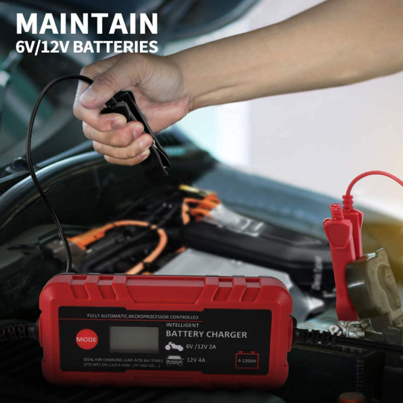 Többcélú akkumulátortöltő: Ez a töltő 6 V-os és 12 V-os akkumulátorokkal is kompatibilis, így ideális járművek és felszerelések széles skálájához, beleértve a fűnyírókat, csónakokat, autókat, motorkerékpárokat, ATV-ket, robogókat, motoros szánokat, elektromos járműveket és elektromos szerszámokat. Ideális különféle típusú ólom-savas akkumulátorok karbantartására és töltésére.