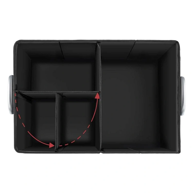 **Erős faelválasztók** Az összecsukható autós rendező szilárd fa elválasztókkal rendelkezik, amelyek Oxford 600D anyaggal vannak burkolva, amelyek kopásállóak, vízállóak, és könnyen törölhetők. A fedél, a külső falak és az alap 2,5 mm-es közepes sűrűségű farostlemezből és gyöngypamutból készült, ami komoly stabilitást és teherbírást biztosít.