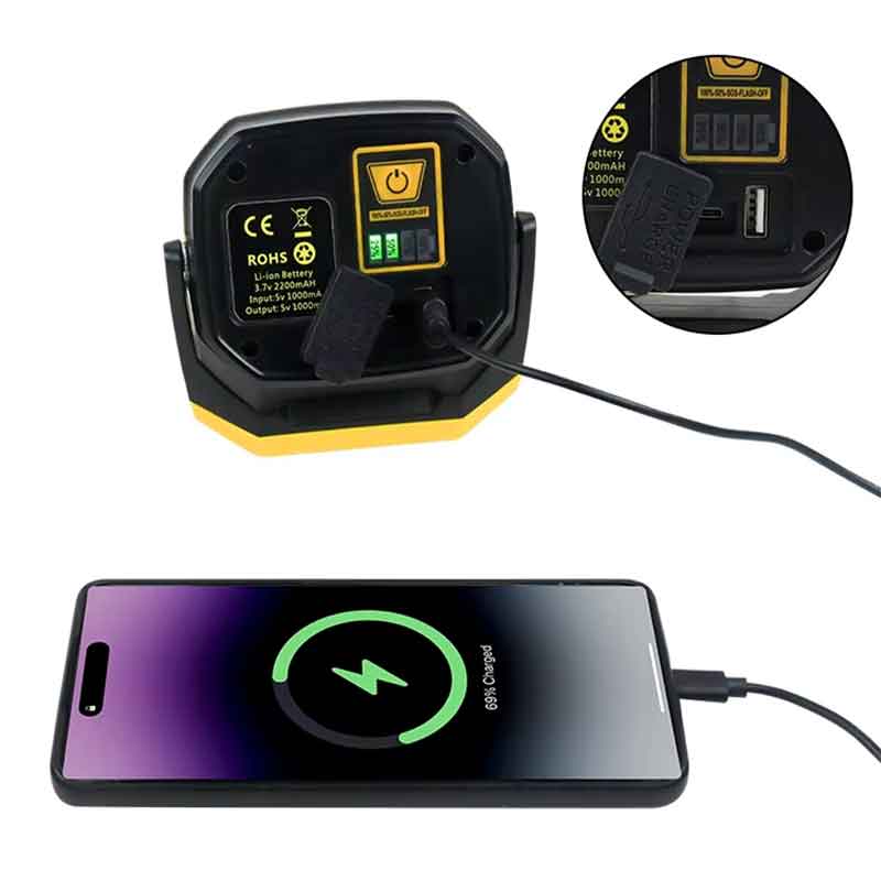 V: Igen. Az USB-C port támogatja a bemenetet (a munkalámpa töltése) és a kimenetet (a mobileszközök töltésére szolgáló tápegységként működik).