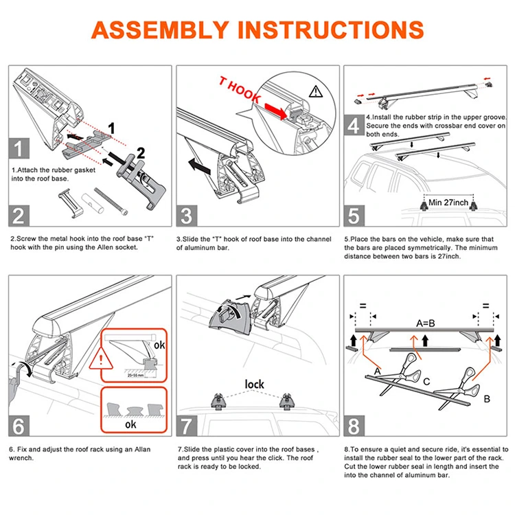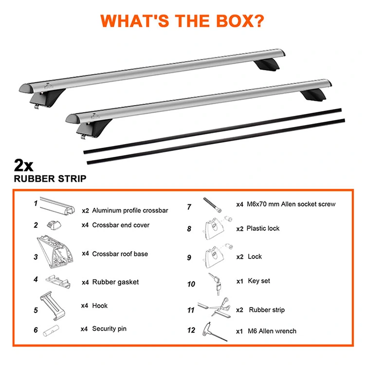 Ezek a tetőcsomagtartó keresztrudak egyszerűen telepíthetők: Hatlapfejű csavarkulcs mellékelve a 10 perces beállításhoz; kézikönyv lépésről lépésre illusztrációkkal.